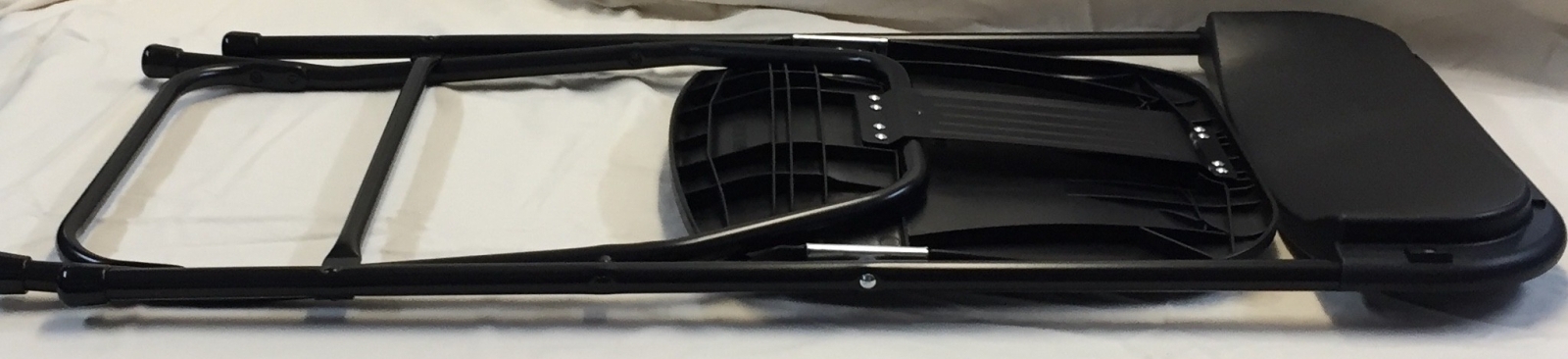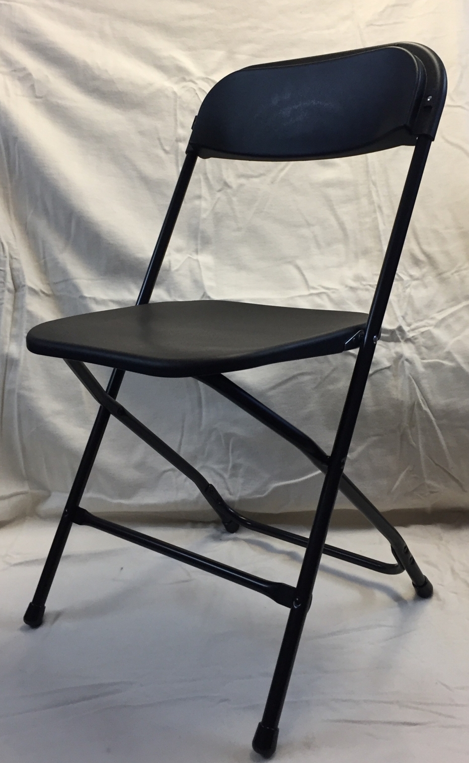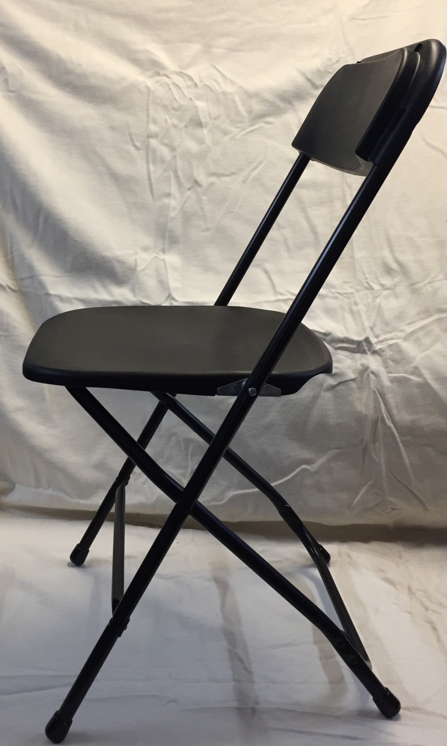 Leichtgewichtiger Klappstuhl in schwarz.